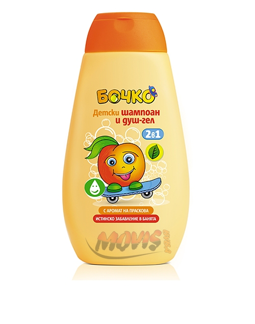 Category:Children Care ( БОЧКО бебешка и детска козметика )Packing:250ml. Gentle cleansing action fresh fruit flavor combined in a formula with conditioning ingredients to be guaranteed fun in the bathroom. Even a small amount of shampoo 2 in 1 with peach flavor, you will create a fluffy and fragrant foam. The added extra glycerin moisturize your skin and hair retain their elasticity and shine.