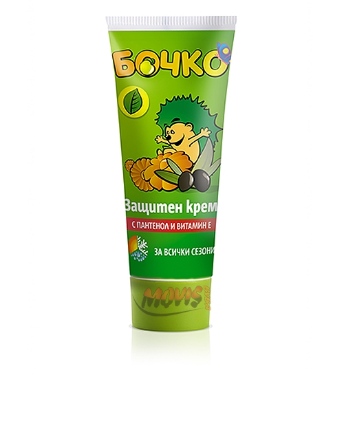 Category:Children Care ( БОЧКО бебешка и детска козметика )Packing:75ml. Specially formulated cream BOCHKO that combines calendula extract, vitamin E and olive oil, and added UV-filters protect baby's skin from harmful weather - wind, cold, sun.