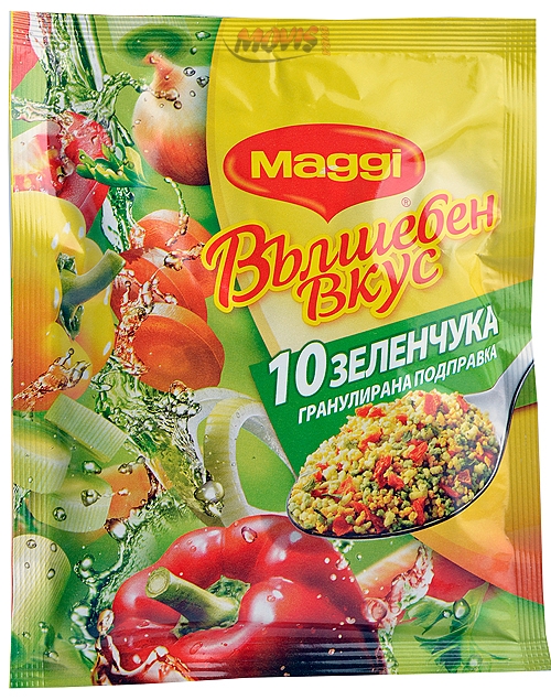 Category:Spices ( Бульони и универсални )Packing:1issue. MAGGI® Magic Taste 10 vegetables is a combination of carrots, tomatoes, red peppers, spinach, leeks, parsley, onions, parsnip, celery and garlic. It is the perfect supplement for every meal.