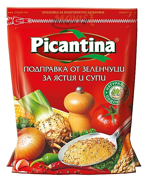 Category:Spices ( Бульони и универсални )Packing:500on Picantina Classic Seasoning is a universal seasoning containing parsley, carrots, onions, celery, turmeric etc. that easily and quickly enhances the taste of meat, fish, soups and salads.