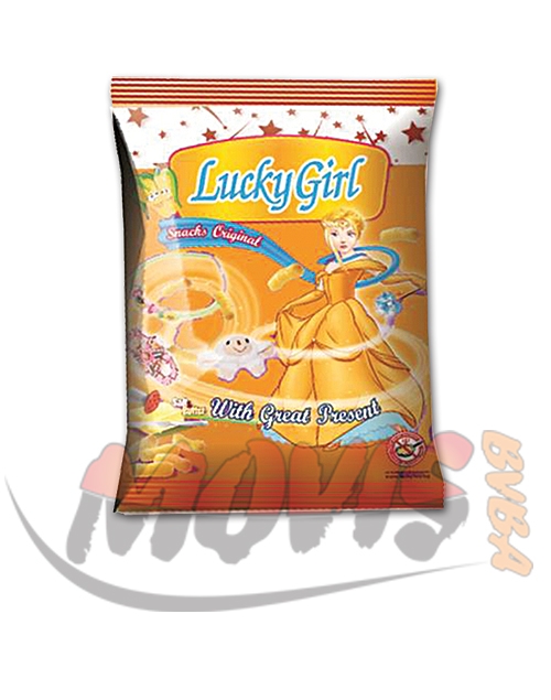 Category:Sweets ( Снаксове за деца )Packing:50on Jumbo Lucky Boy /50 g./ – purple and Jumbo Lucky Girl /50 g./ – orange is the following type considering size. It is a specially manufactured snacks of pure corn semolina with a taste of butter with more corn sticks and various larger gifts.