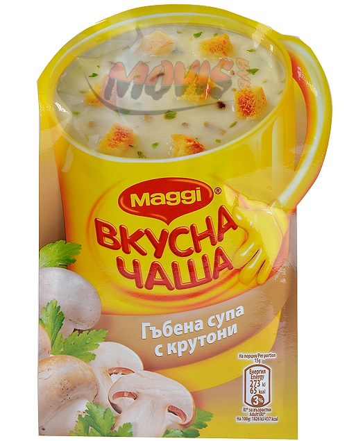 Category:Spices ( Супи )Packing:16on Maggi mushroom cream soup is fond and delicate. With its dense mushroom taste and added croutons, it will warm you forever.