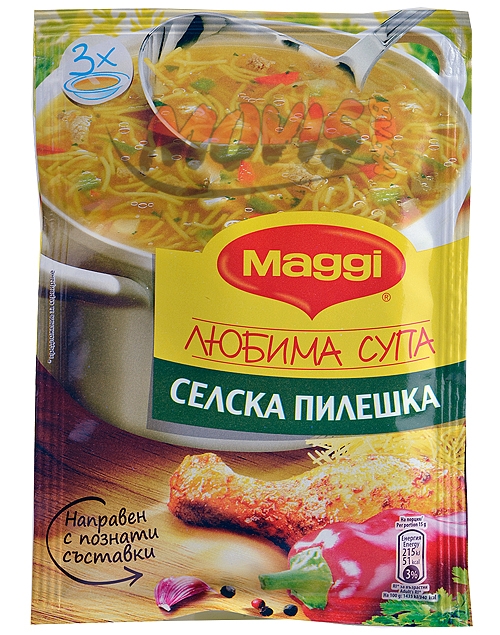 Category:Spices ( Супи )Packing:46on Maggi village chicken soup is cooked with delicate chicken meat, fresh vegetables and vermicelli. It is something that you can’t resist. When serving it, just add some feta cheese with olive oil and herbs to every portion.