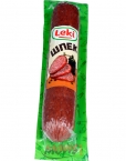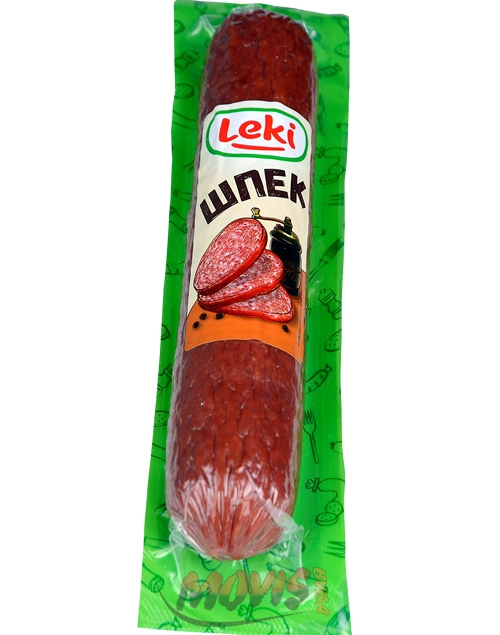Category:Meat Products ( Трайни колбаси )Packing:240on Larded sausage LEKI is well dried and made from pork meat, bacon and classic spices. It has tight structure with evenly distributed bacons and is characterized by the aroma of matured meat and black pepper.