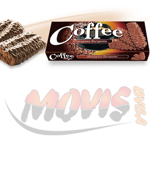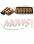 Cocoa coating 41% (sugar, hardened refined vegetable fat, cocoa powder 9.1%, dry whey powder, emulsifiers: soy-bean lecithin Е322, E476, flavours: vanilla, coffee), wheat flour, maize farina, sugar, refined vegetable fat, dry whey powder, egg melange, cocoa powder 1%, rasped coco-nut, raising agents: ammonium bicarbonate Е503(ii), sodium bicarbonate Е500(ii), emulsifier: Е471.