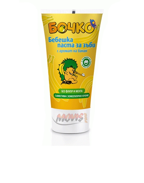 Category:Children Care ( БОЧКО бебешка и детска козметика )Packing:50ml. This special formula with low abrasiveness cleans teeth and prevents the development of bacteria responsible of caries formation. Natural ingredients strengthen the enamel of the milk teeth and protect the gums from inflammation. Due to the fact that the toothpaste does not contain Fluor, it is harmless if swallowed. It doesn’t contain preservatives and colorants. Light fruit flavour makes it easier to teach your child to take regular care of the oral hygiene. This baby toothpaste can be used along with homeopathic medicines, because it doesn’t contain Mint and Fluor.