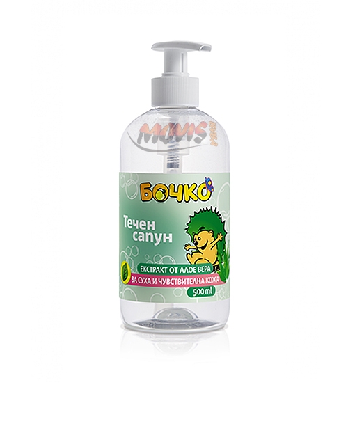 Category:Children Care ( БОЧКО бебешка и детска козметика )Packing:500ml. This delicate formula gently washes the skin and contains Aloe Vera extract, known for its moisturizing and softening qualities which make it widely used in baby cosmetics. Bochko Liquid soap is enriched with glycerin for longer hydration and protection against the harmful effects of the environment. It is especially good for frequent washing of kids hands as well as for adults with sensitive skin.