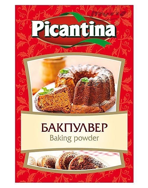 Category:Spices ( Традиционни подправки )Packing:10on Picantina Baking powder gives always perfect results. It is mainly used like bulking agent in many recipes for cakes, pies and many other baked dishes.